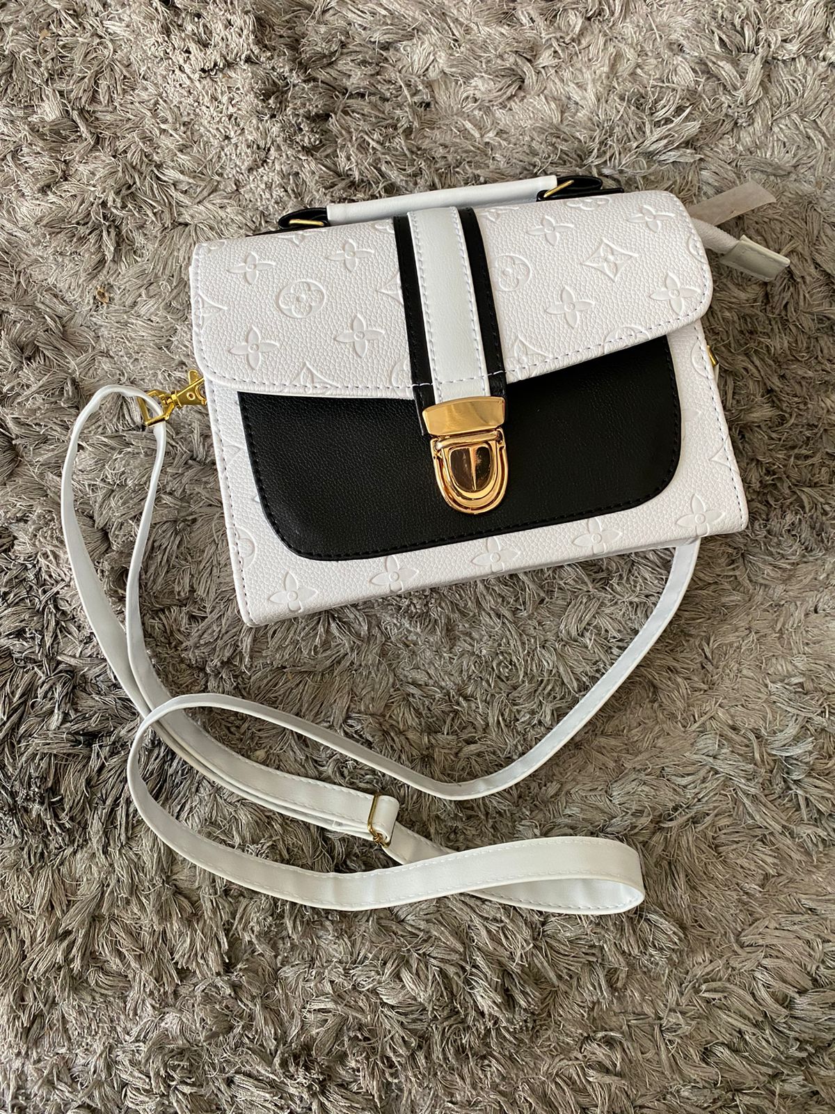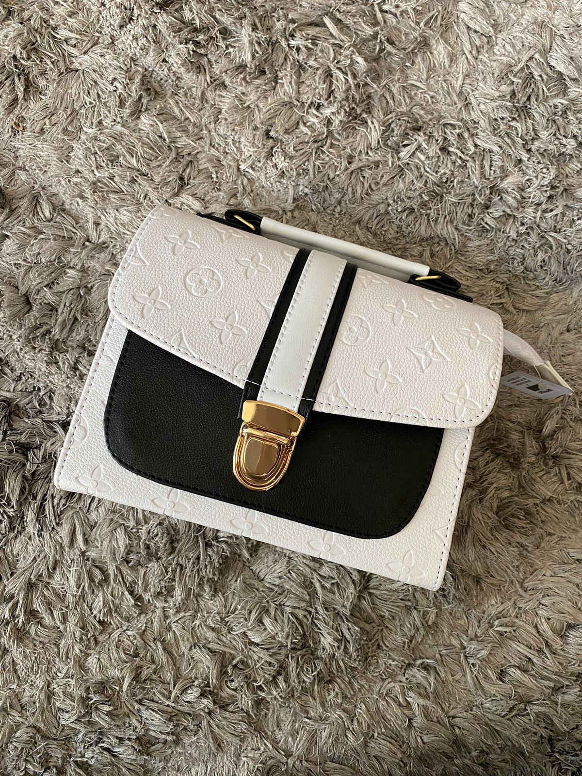 Bolso Cuadrado Blanco Y Negro Con Flores