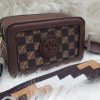 Bolso De Mano Y Colgante Café Oscuro Con Cuadros