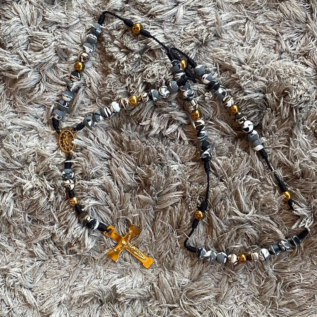 Camándula Neopreno y Acero Blanco,Negro,Gris Acero Dorado