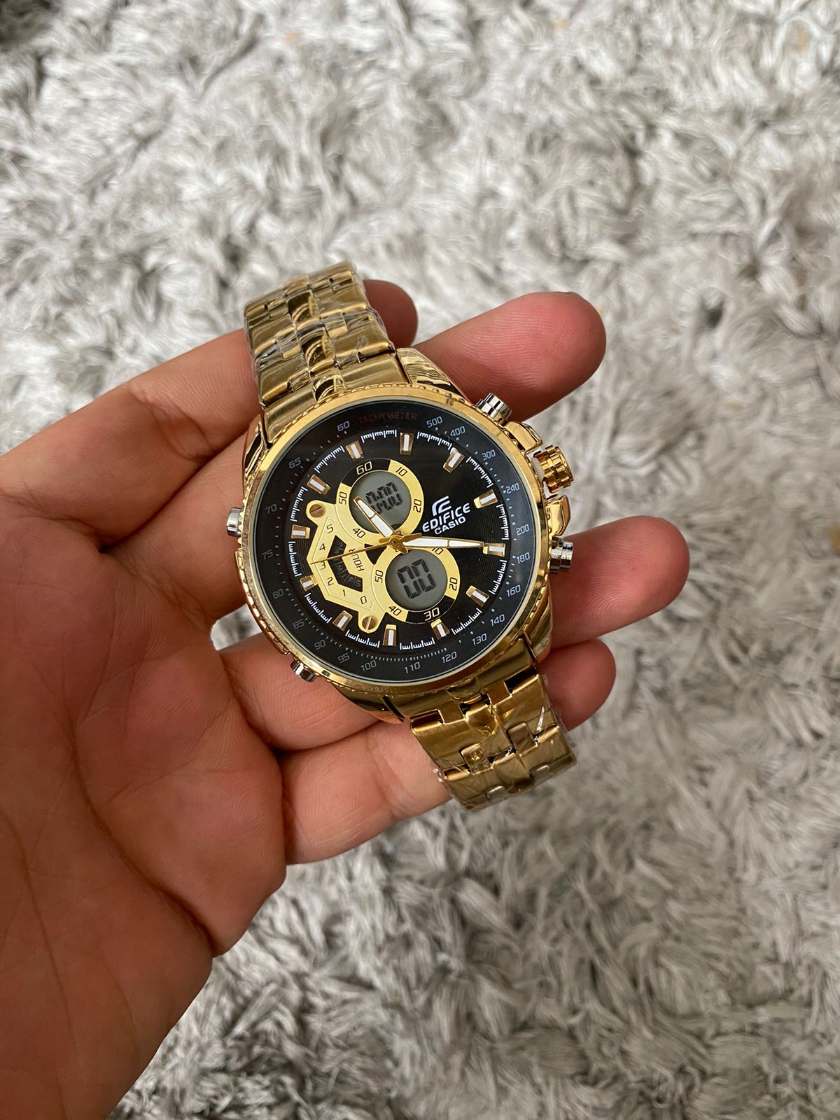 Edifice Cassio Doble Hora Dorado Pantalla Negra