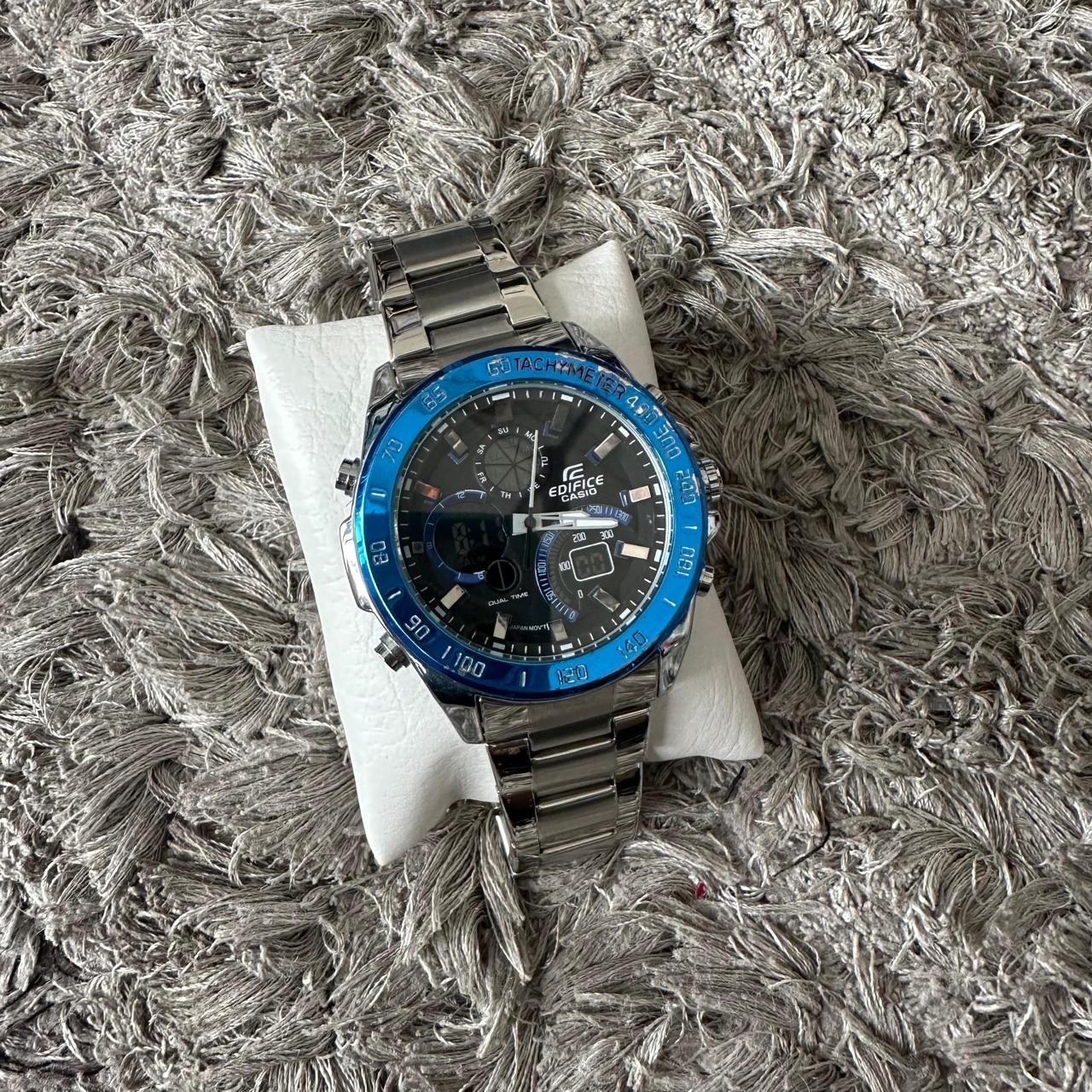 Edifice Cassio Doble Hora Plateado Azul