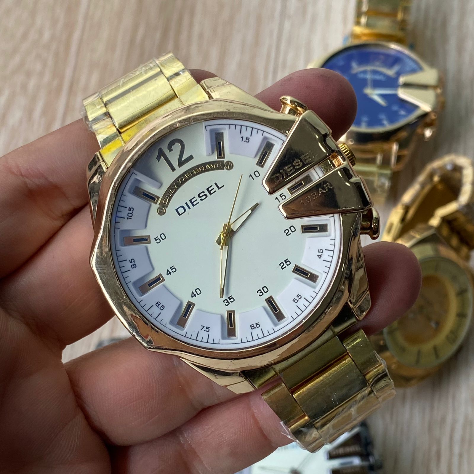 Reloj Diésel dorado pantalla blanca