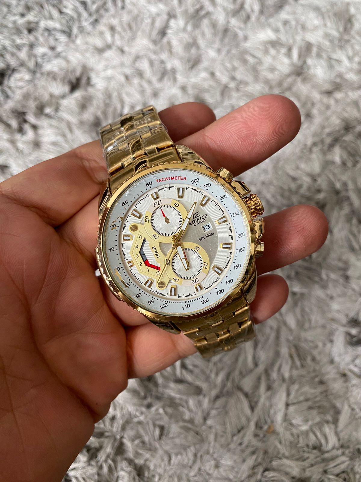 Edifice Cassio Dorado Pantalla Blanca Detalles Dorados