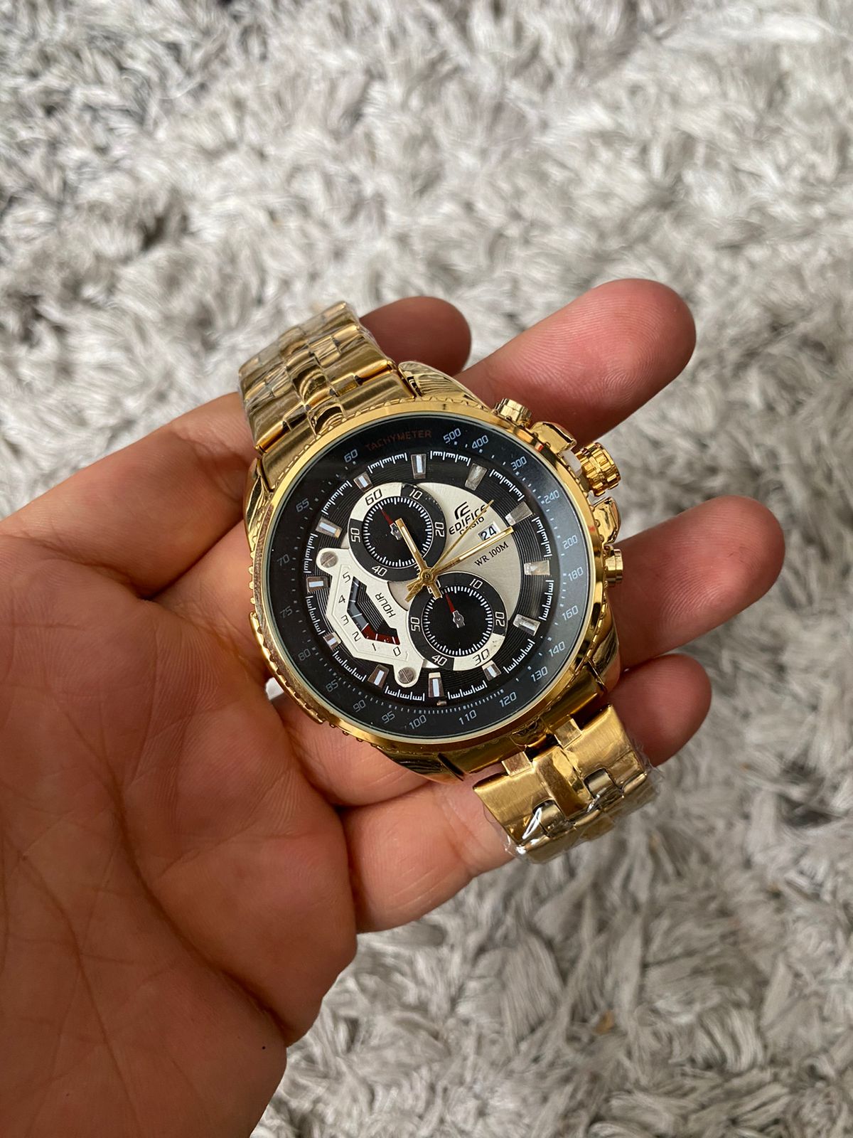 Edifice Cassio Dorado Pantalla Negra Detalles Plateados