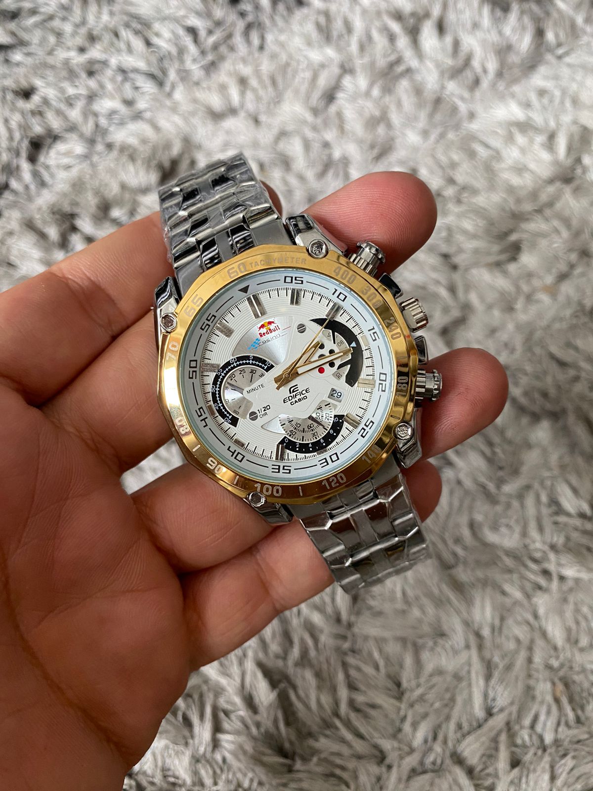 Edifice Cassio Plateado Borde Dorado Pantalla Blanca