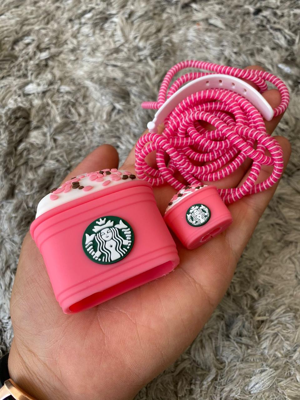 Estuche Para Cargador iPhone CR Starbucks Rosado