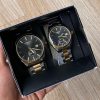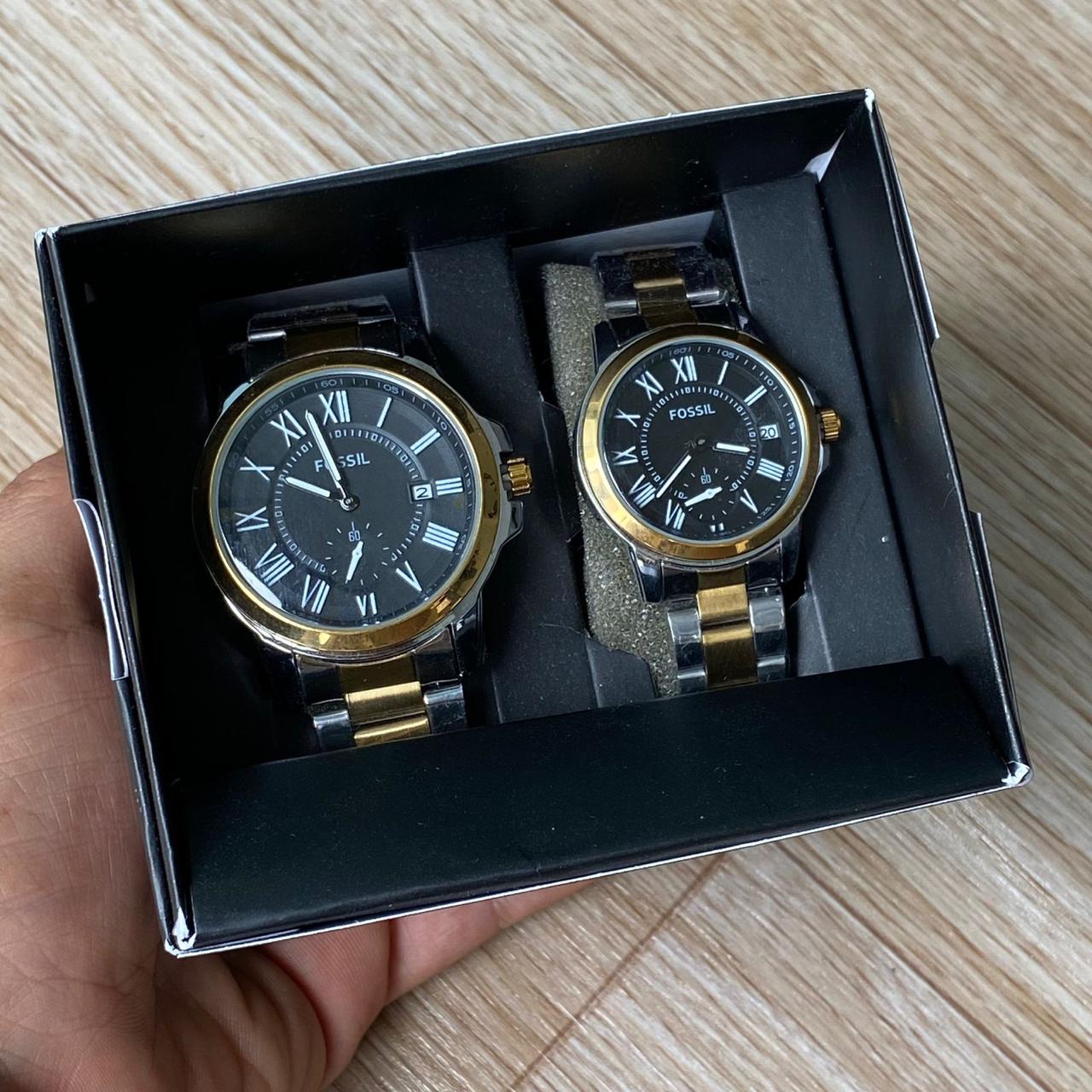 Pareja Reloj Fossil Bicolor Plateado Dorado Fondo Negro