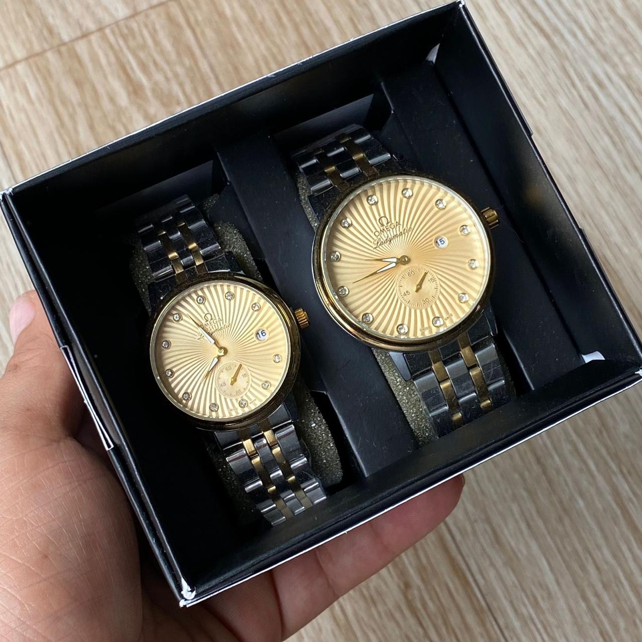 Pareja Reloj Omega Bicolor Plateado Dorado Fondo Dorado