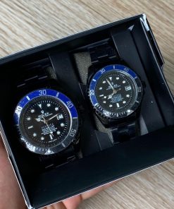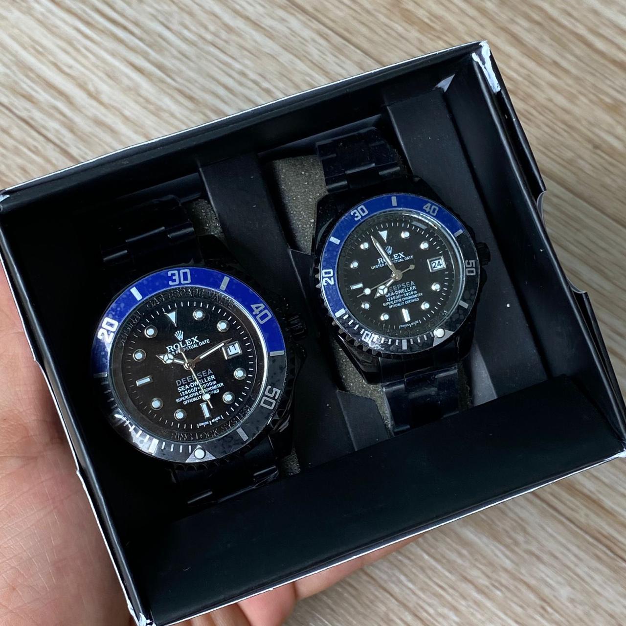 Pareja Reloj Rolex Negro Azul Fondo Negro