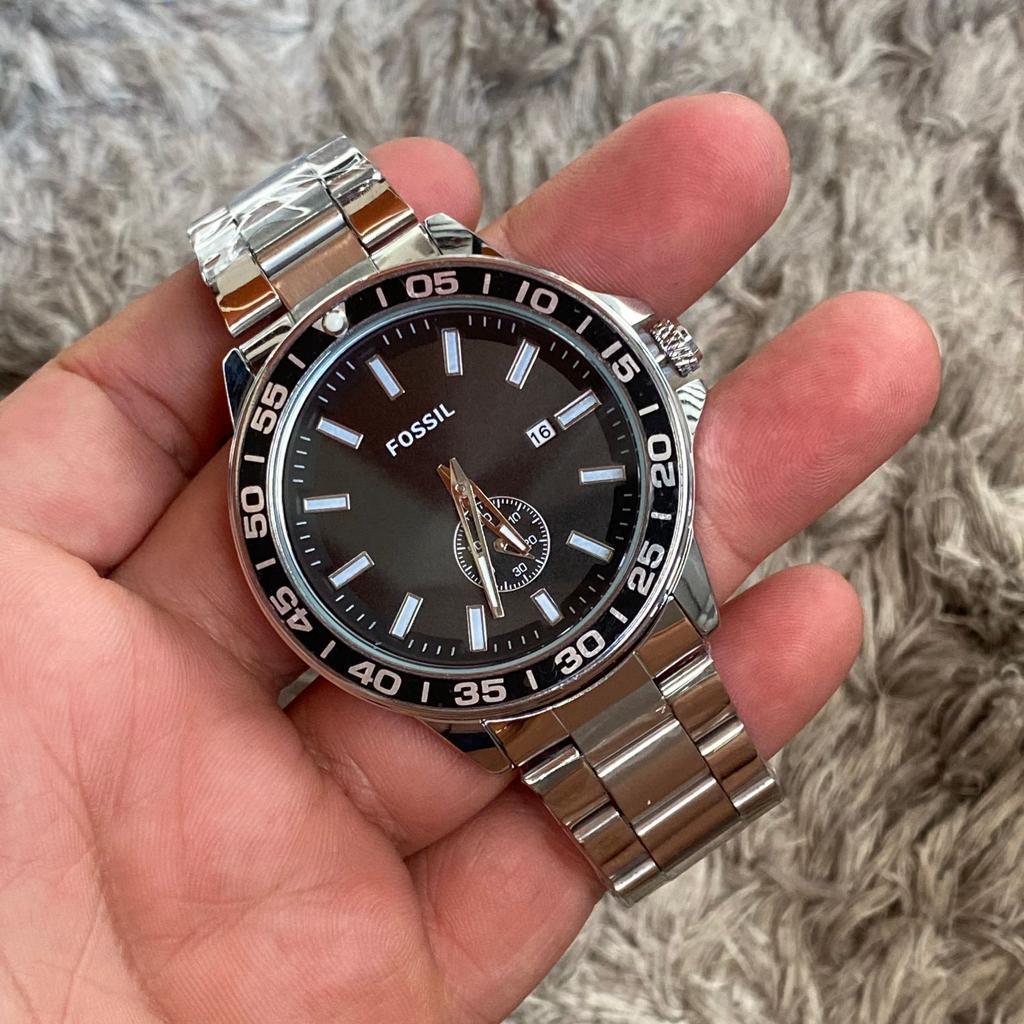 Reloj Acero Caballero Fossil Plateado Fondo Negro