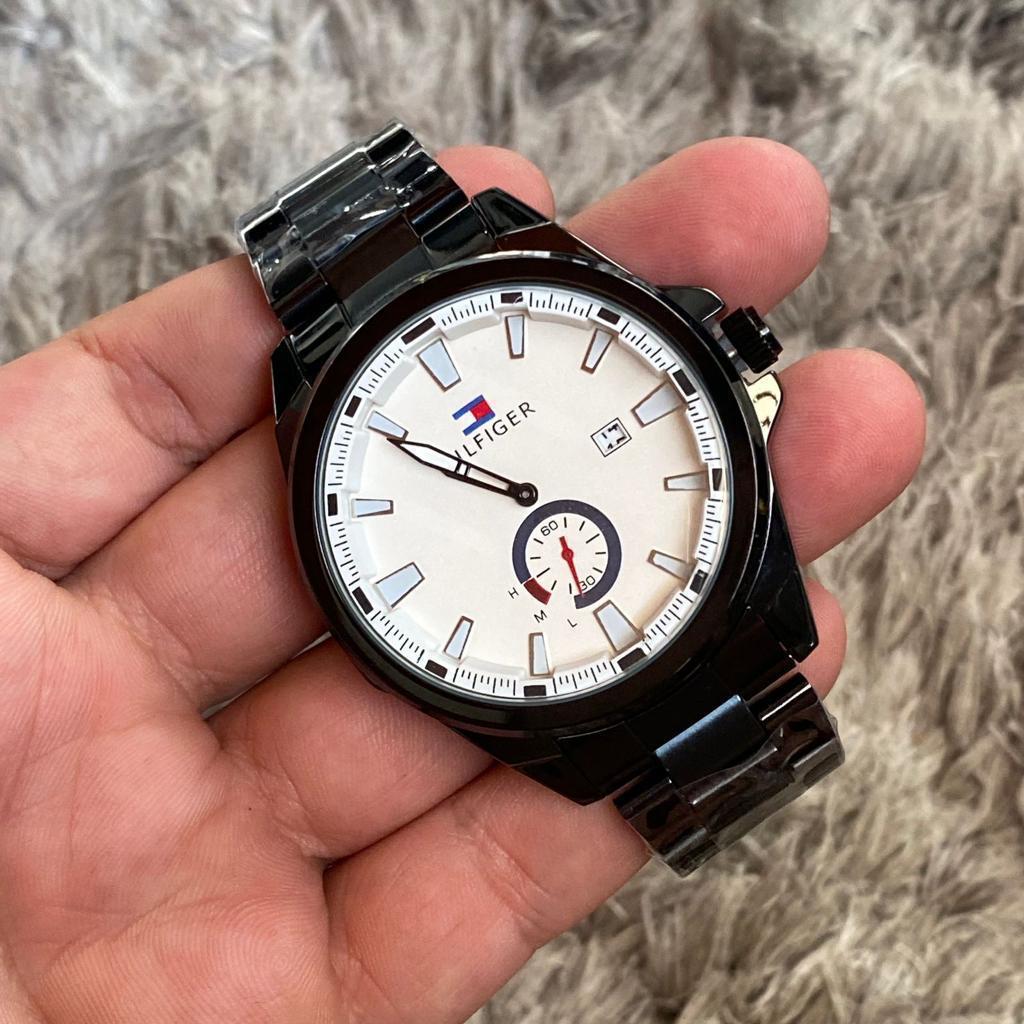 Reloj Acero Caballero Hilfiger Negro Fondo Blanco