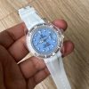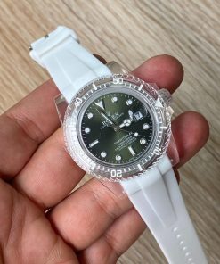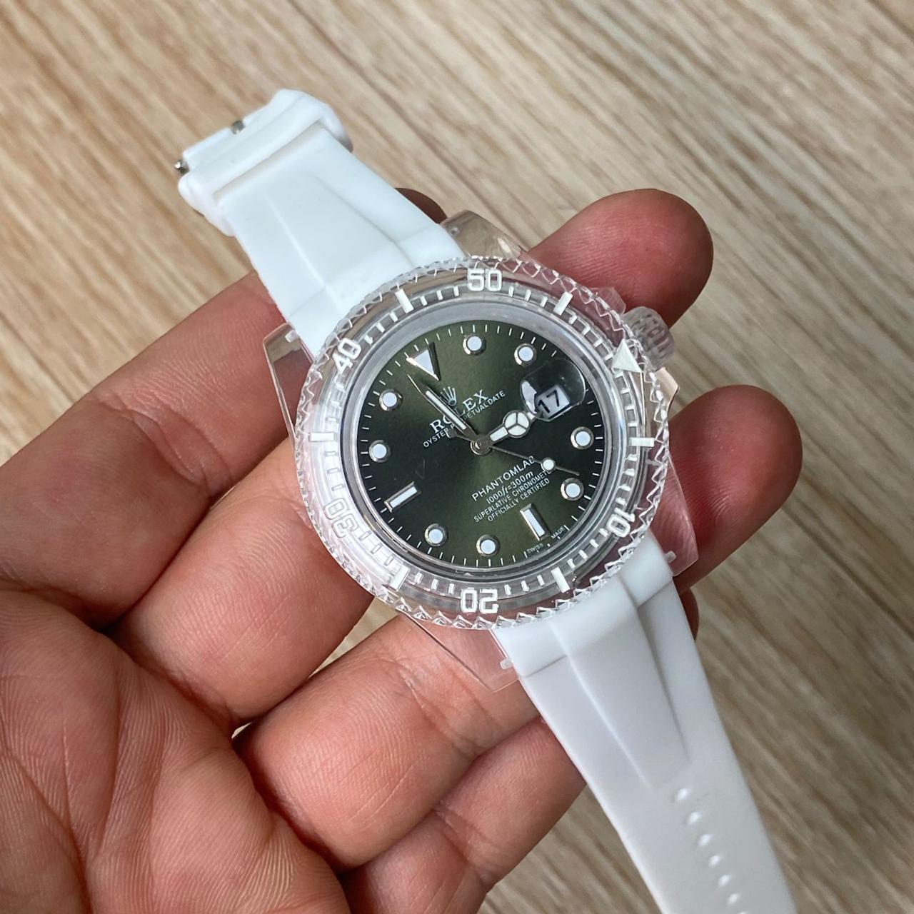 Reloj Acero Dama Rolex Blanco Fondo Verde