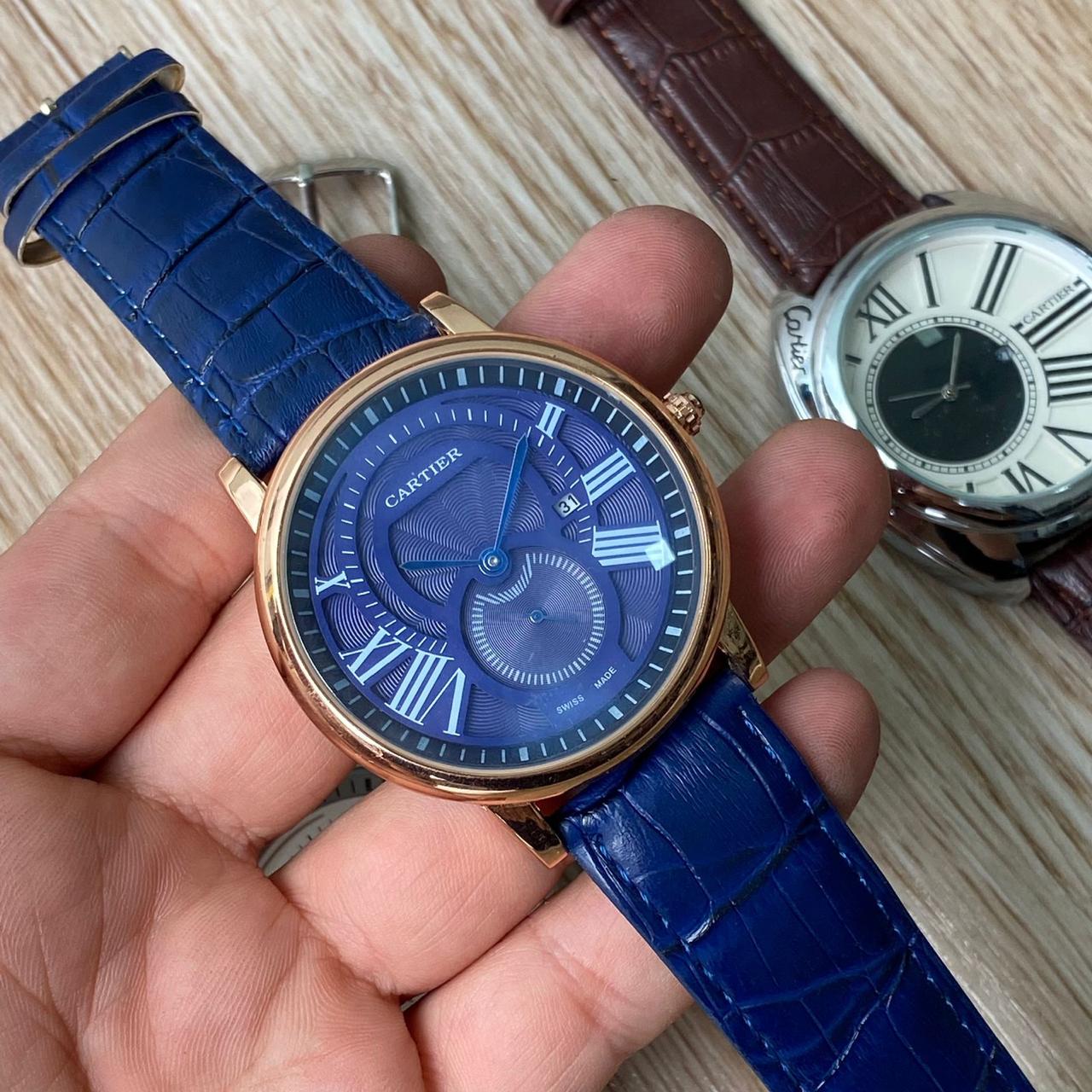 Reloj Cartier Cuero Bronce Azul Oscuro