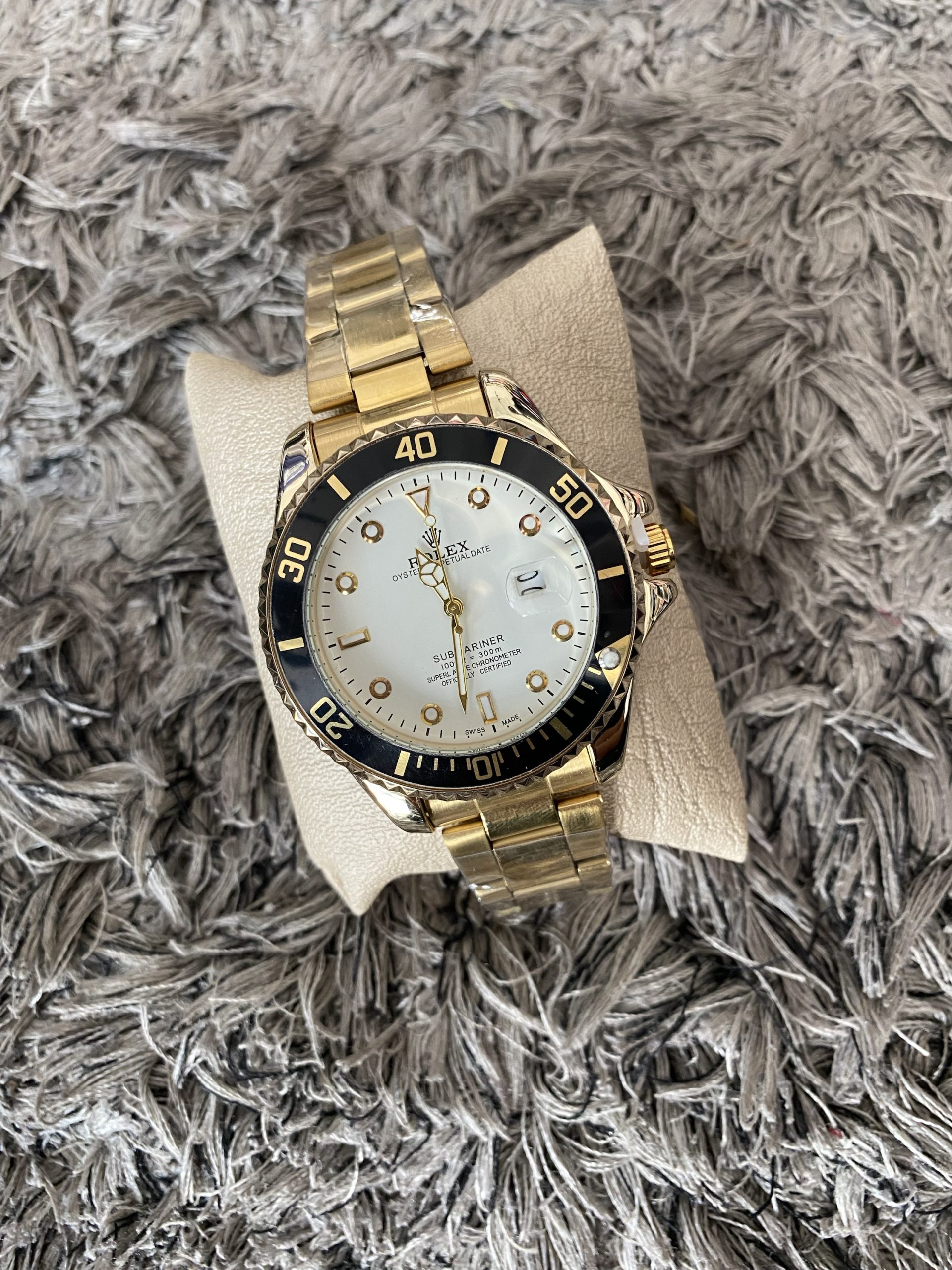 Reloj Rolex Caballero Dorado Fondo Blanco Borde negro