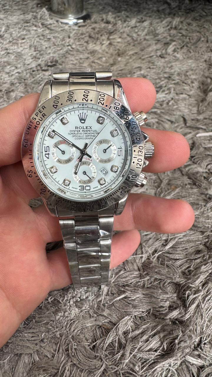 Reloj Rolex Caballero Plateado Fondo Blanco 3 Circulos