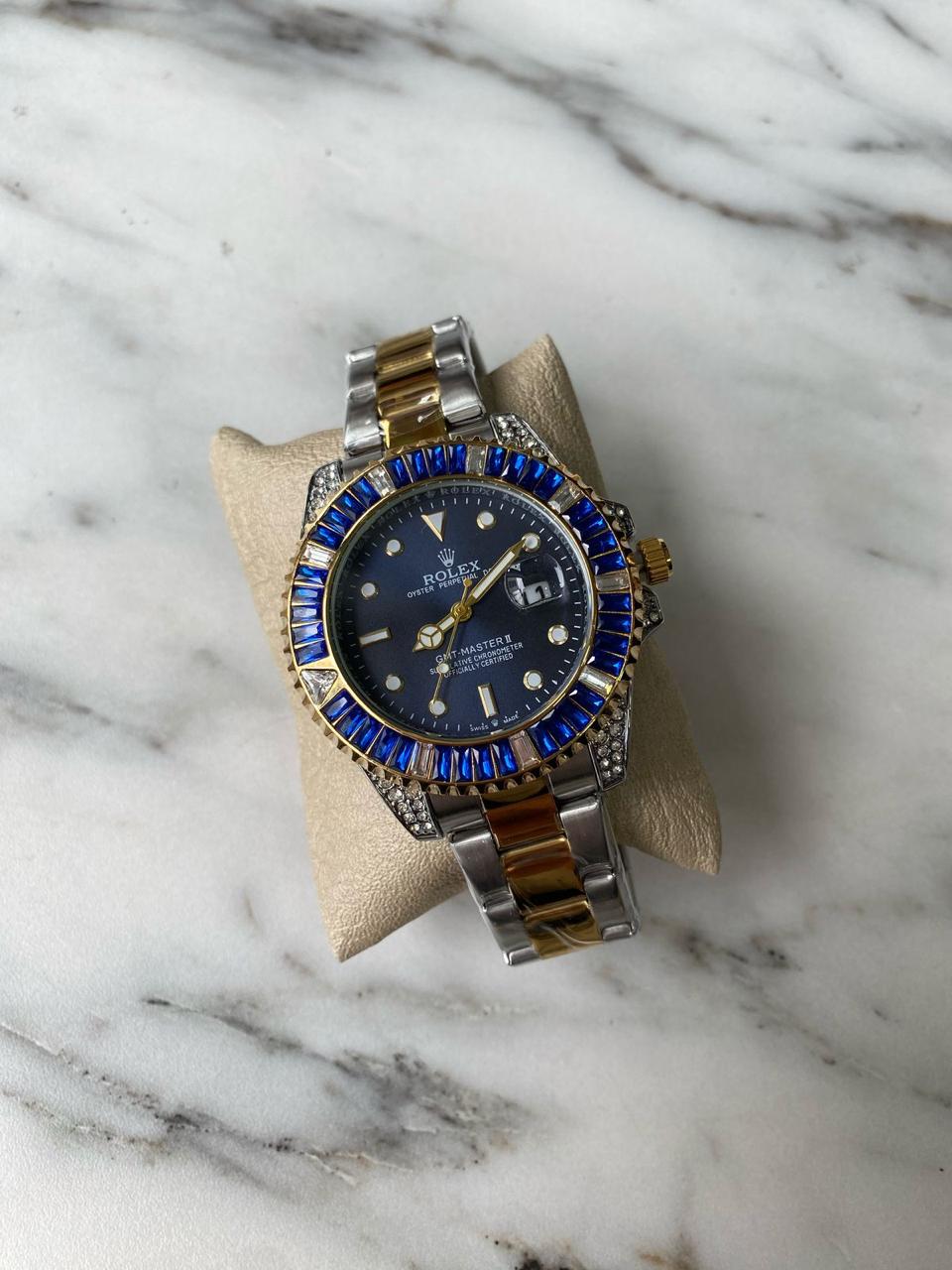 RELOJ ROLEX PIEDRA bicolor fondo azul