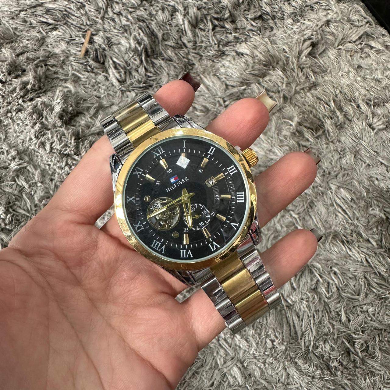 Reloj Tommy Hilfiger Bicolor Fondo Negro Numeros Romanos